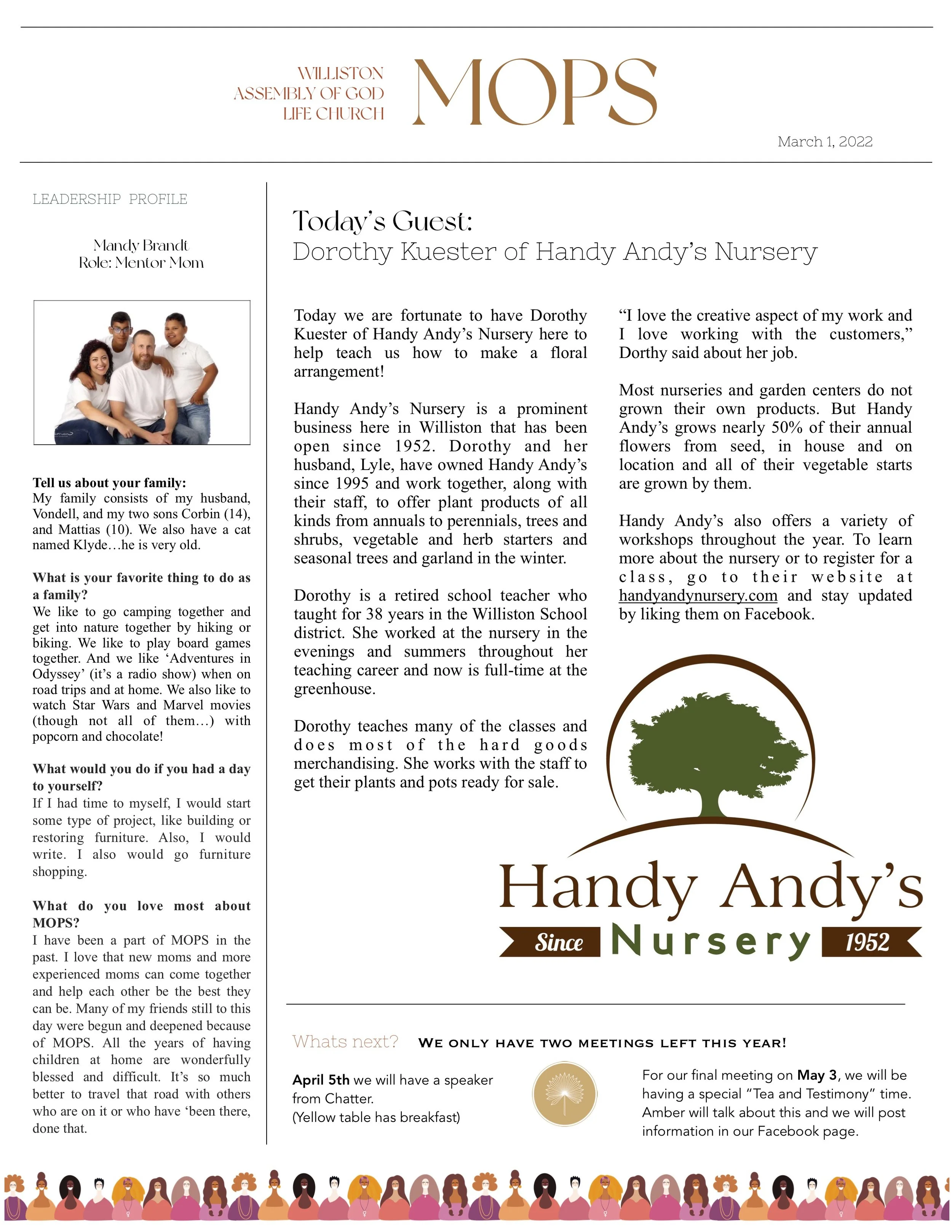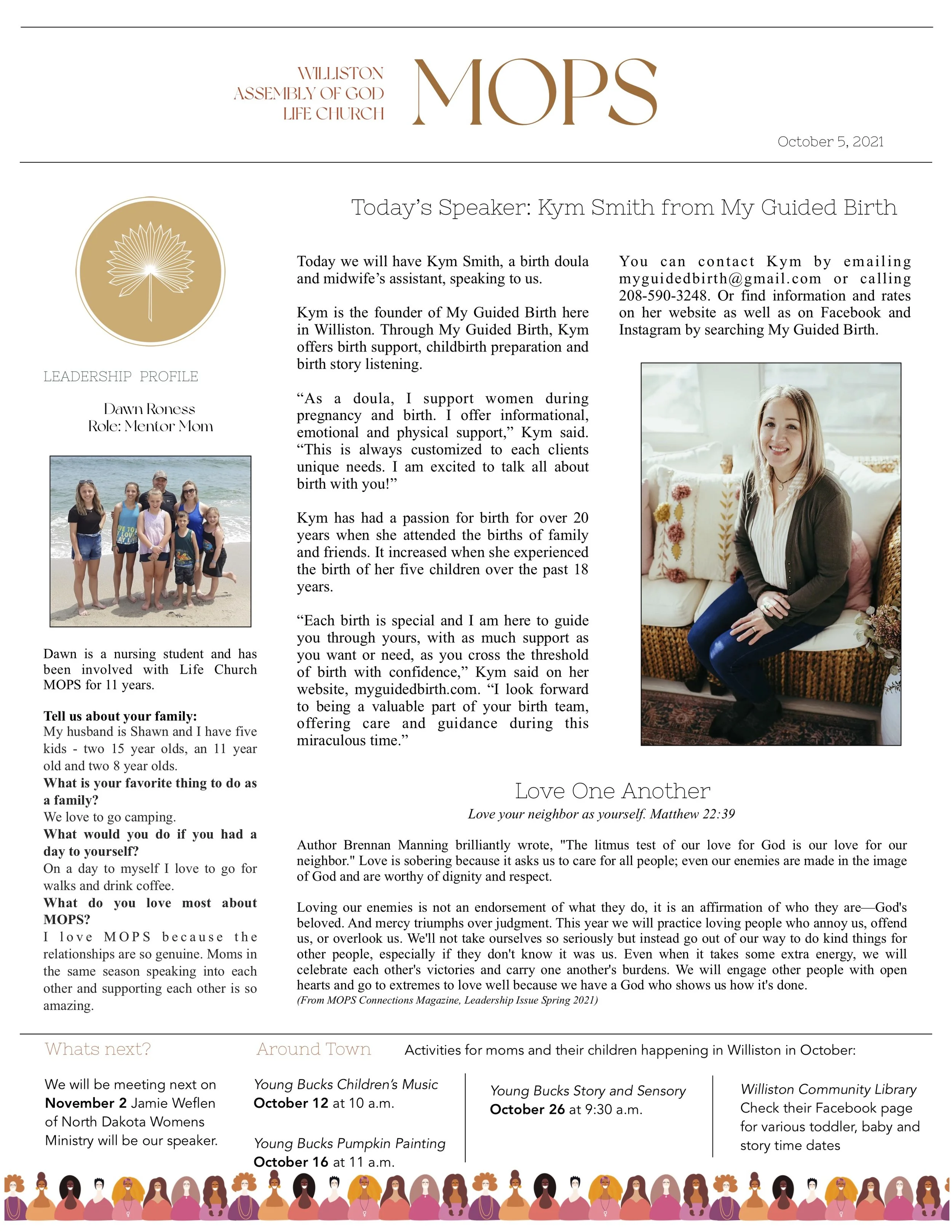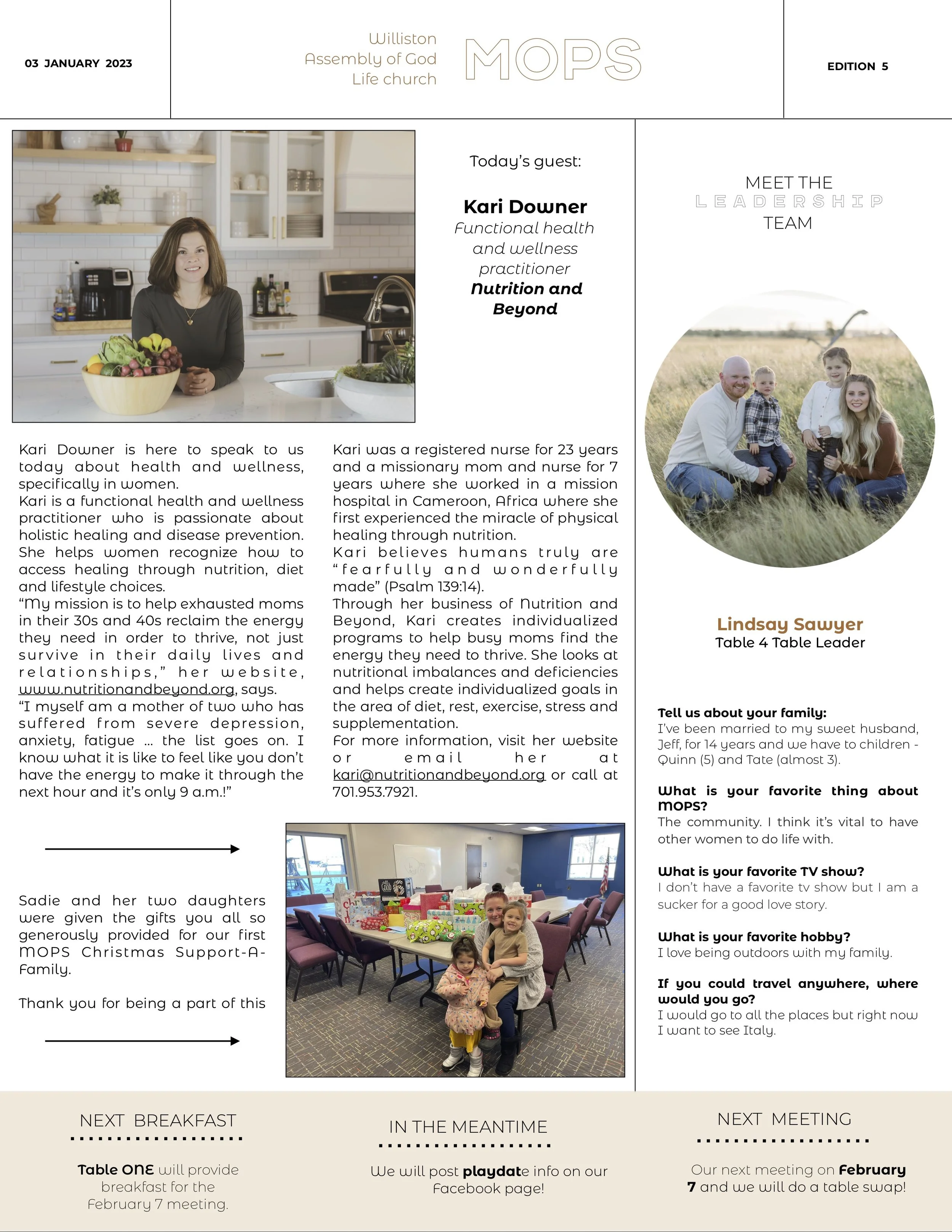 Non-Profit Newsletters A monthly newsletter written and designed by E. King Media for the local Mothers of Preschoolers ministry.
